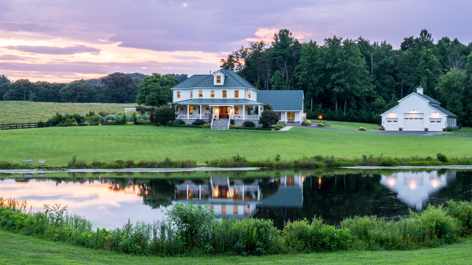Nestled in the foothills of the Blue Ridge Mountains, the estate rests on 10 acres of lush, rolling farmland—a serene escape that is both rustic and elevated.